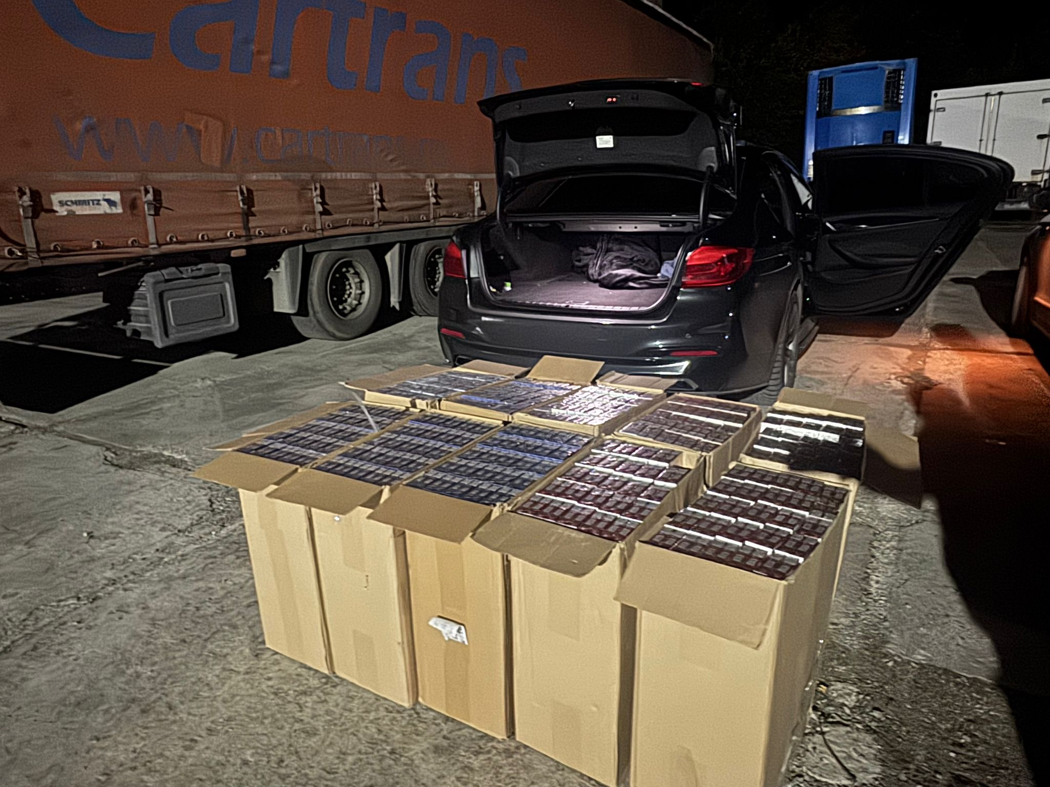În urma controlului fizic detaliat, în habitaclu și în portbagaj a fost depistată o cantitate totală de 4990 pachete de țigări, de mărci diferite, cu timbru de acciz al Republicii Moldova, transportate în lipsa documentelor de proveniență. Documentați pe cazuri sunt doi cetățeni moldoveni, cu vârstele de 38 și 42 de ani.