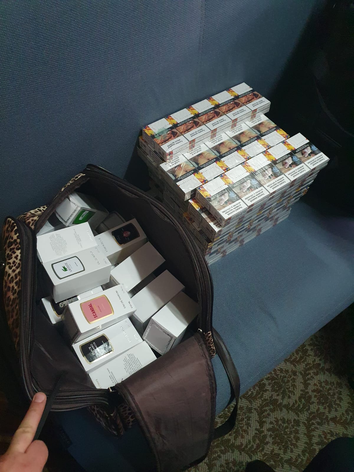 În bagajele unui pasager – cetățean al României – au fost descoperite 6200 de țigarete și 40 de cutii de parfumuri, bunuri nedeclarate autorității vamale. Produsele erau disimulate printre hainele personale, în două valize.
